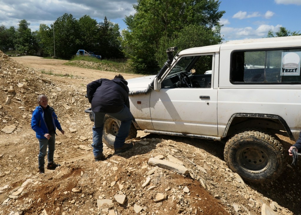 Im ehemaligen Steinbruch wartet ein teilweise sehr anspruchsvoller Parcours auf die Offroadfahrer und wir waren froh, dies unter fachkundiger Anleitung üben zu können. Unser Instructor Jörg konnte uns alles sehr gut strukturiert und anschaulich vermitteln, dazu blieb er immer die Ruhe in Person, auch wenn manch ein Fahrer oder Beifahrer Angstschweiß um’s Heilix Blechle bekam!