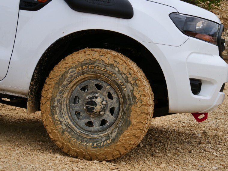 Die ersten Bodenwellen waren nicht besonders anspruchsvoll, dennoch mussten wir für jedes Fahrzeug erst lernen, wann der Punkt käme, an dem man aufsitzen würde. Über Stock und Stein ging es zum ersten „Berg“. Hier standen natürlich bergan- und abfahren auf dem Programm. Der Bergabfahrassistent des Rangers leistet hier übrigens hervorragende Arbeit! Beim nächsten Berg gab es dazu noch eine Wasserdurchfahrt, es wurde also richtig spannend.